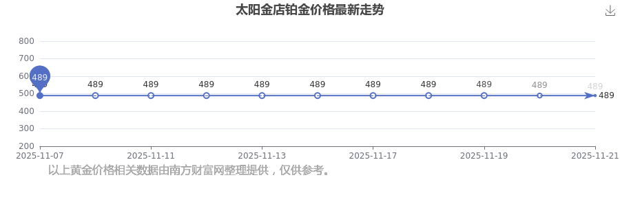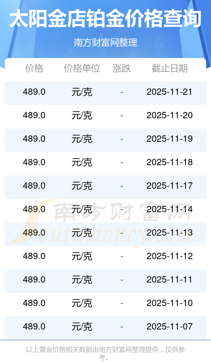 今日太阳金店所公布的 铂金价格最新价格为489.0元/克。