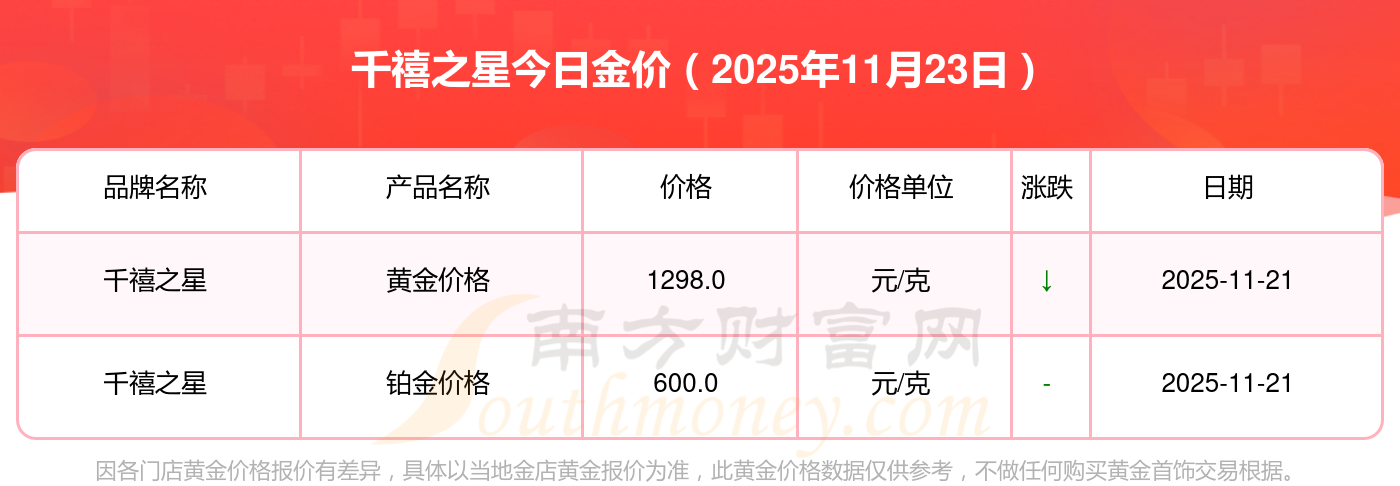 以上数据仅供参考,与当地金店有所差异,请以实际价格为准。