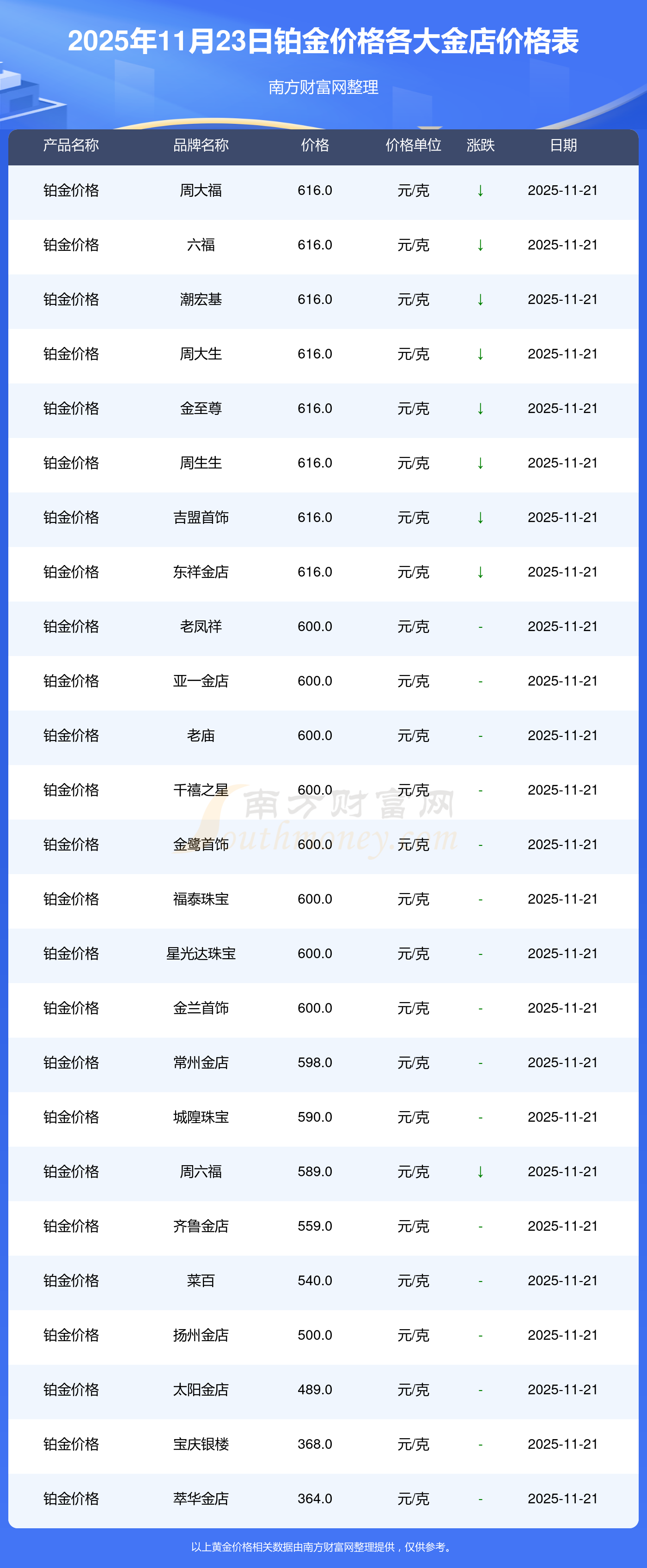 今日铂金价格来了_2025年11月23日各金店铂金价格多少1克?