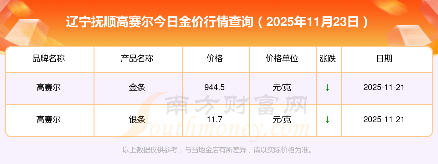 辽宁抚顺高赛尔黄金价格多少一克