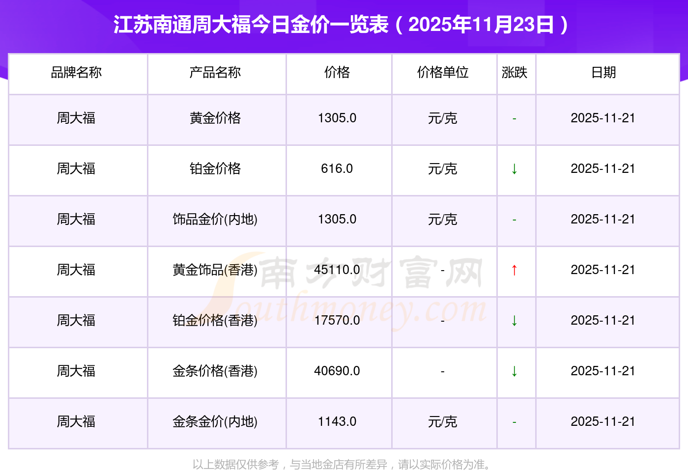 今天黄金价格行情如何?现在一克黄金的售价是多少?江苏南通周大福今日金价查询