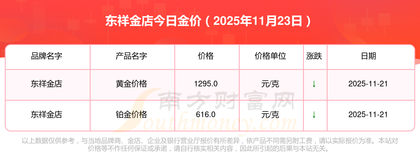 现在东祥金店黄金价格是多少钱1克_2025年东祥金店今日金价是多少钱一克,最新东祥金店查询,2025年11月23日东祥金店铂金价格现在每克多少钱?最新东祥金店铂金价格报价公布,一起来看看吧!