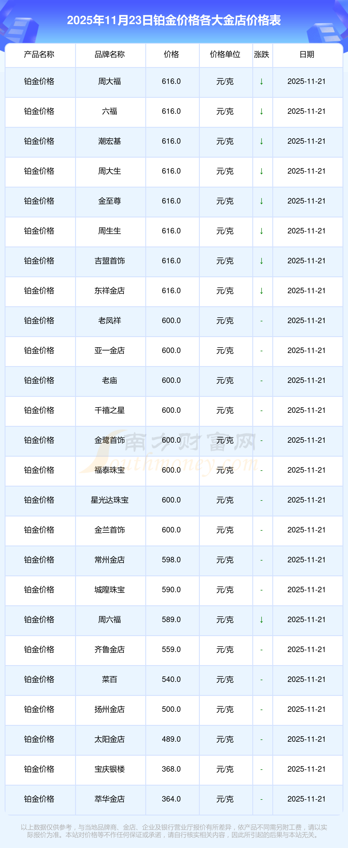 现在铂金价格多少钱一克_2025年11月23日各金店铂金价格表最新,一起来看看吧!