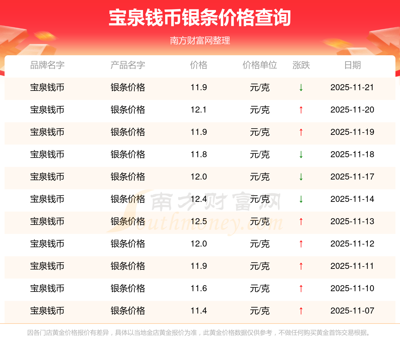11.9元/克的价格,是宝泉钱币今日 银条价格的最新行情。