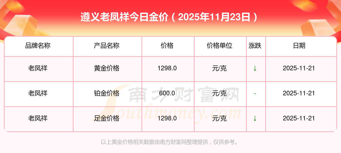 2025年11月23日老凤祥金条金价查询_今日遵义老凤祥金价表一览