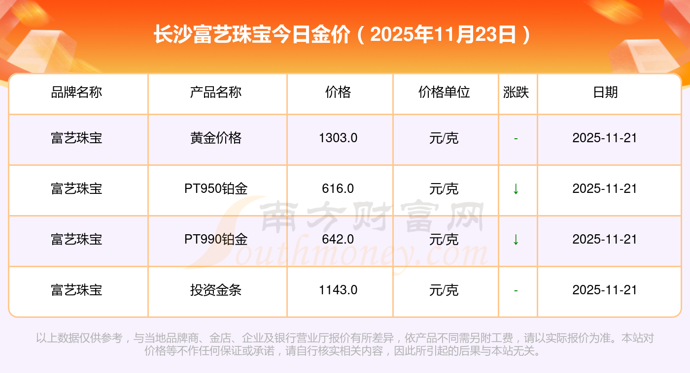 现在长沙富艺珠宝黄金价格表_长沙富艺珠宝黄金多少钱一克(2025年11月23日)