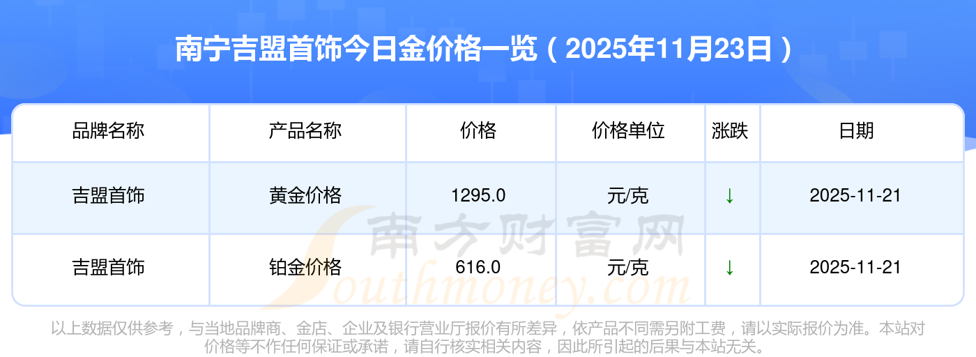 现在南宁吉盟首饰黄金价格是多少钱1克?今日南宁吉盟首饰金价表一览