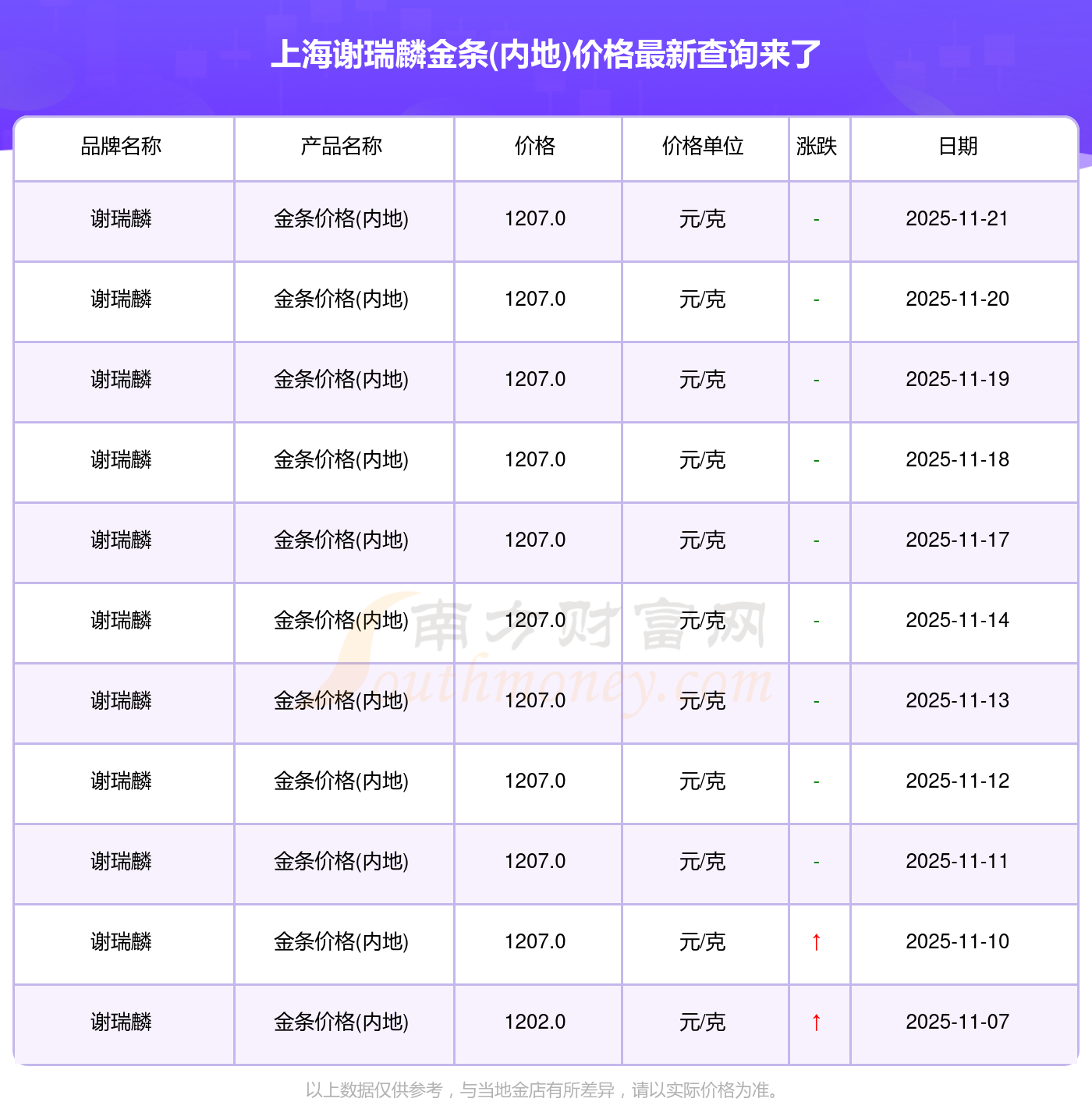 以上数据仅供参考,与当地金店有所差异,请以实际价格为准。