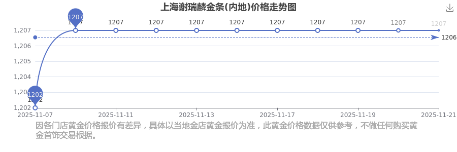 今日上海谢瑞麟金条(内地)价格最新为:1207.0元/克。