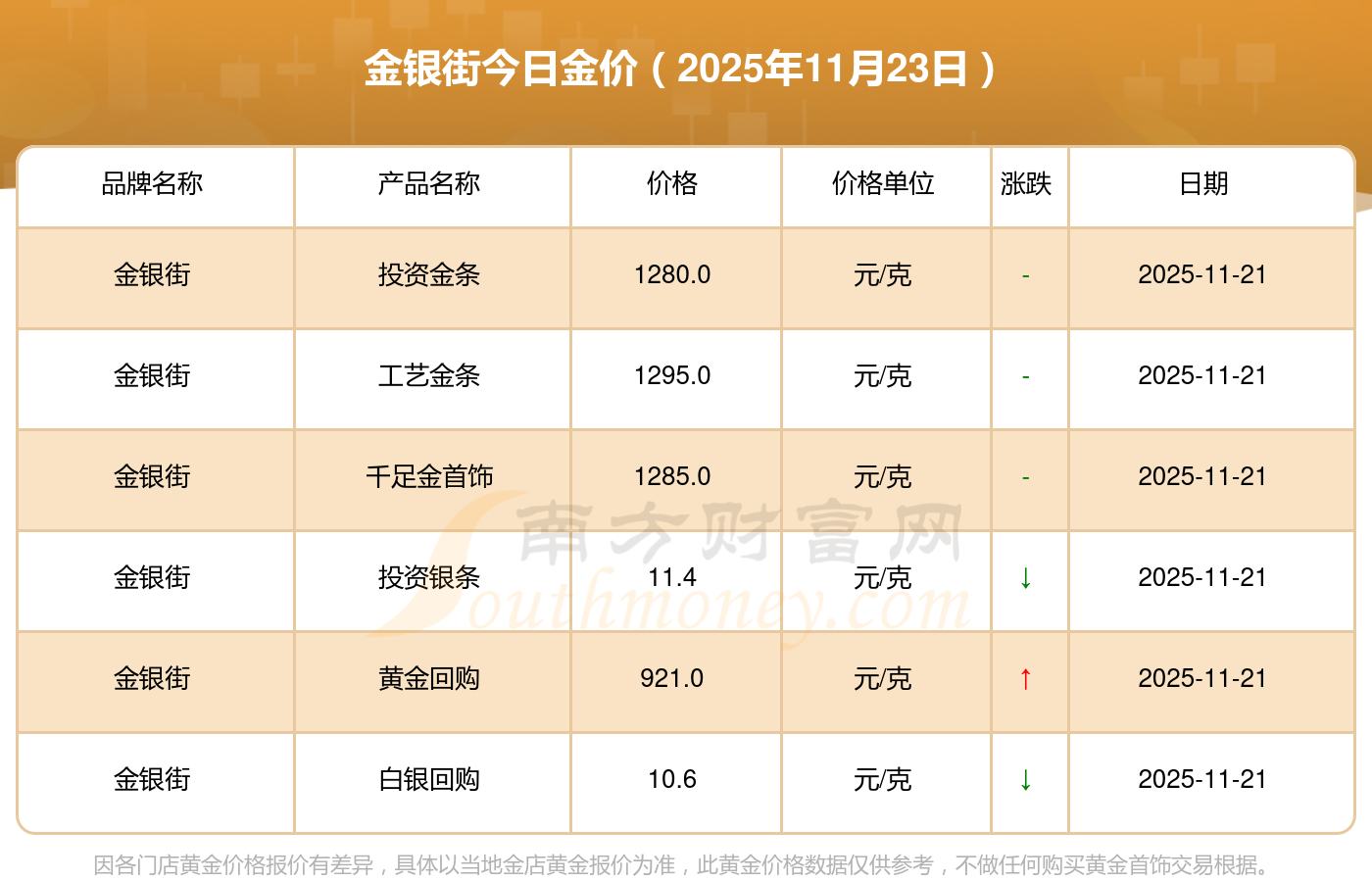 金银街今日金价的具体数字是怎样的?数据来了:黄金价格1305.0元/克,铂金价格616.0元/克,饰品金价(内地)1305.0元/克,黄金饰品(香港)45110.0,铂金价格(香港)17570.0,金条价格(香港)40690.0,金条金价(内地)1143.0元/克,黄金价格1298.0元/克,铂金价格600.0元/克,足金价格1298.0元/克,黄金价格1266.0元/克。