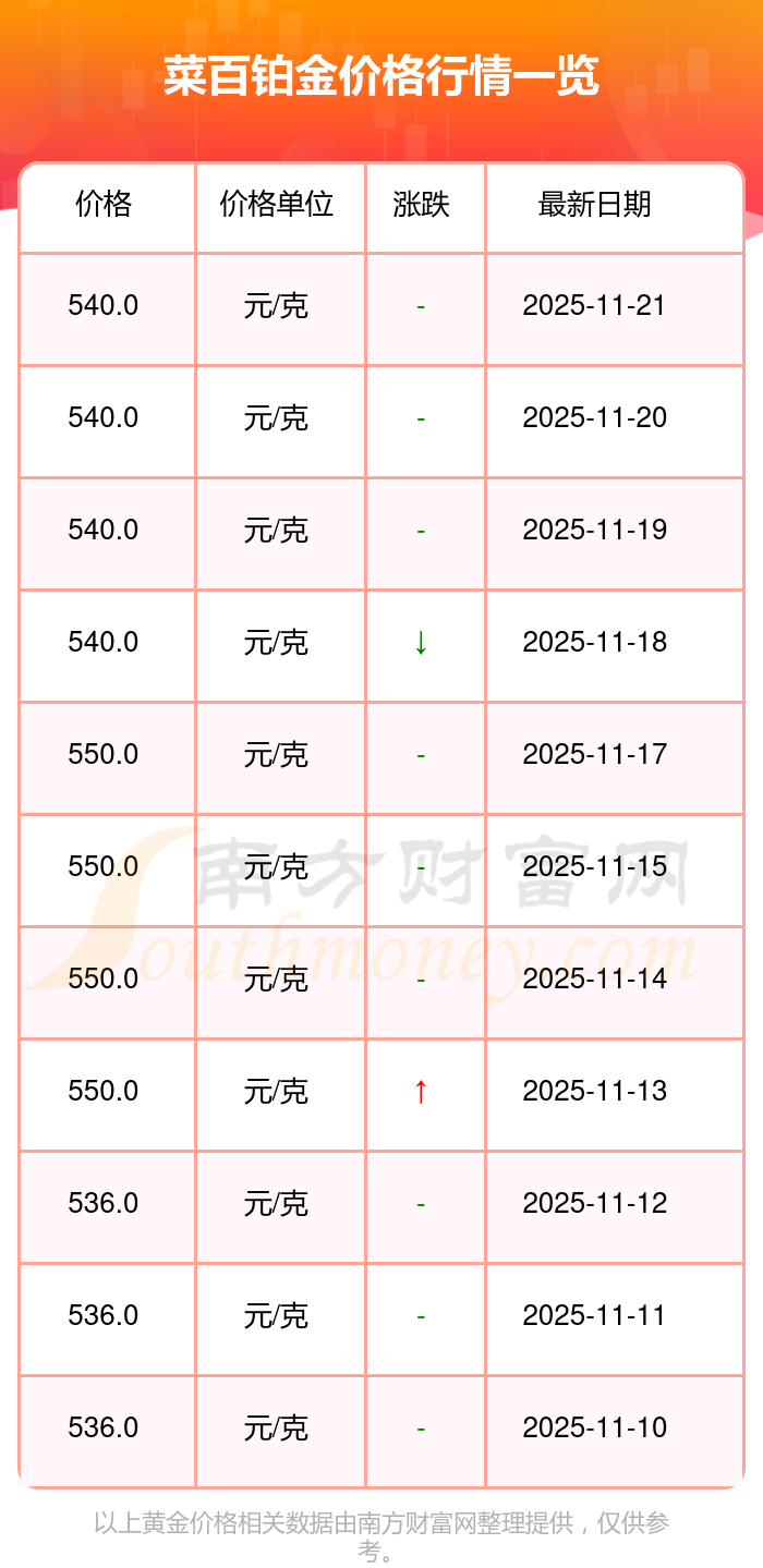 能否告知今天每克铂金的价格情况?菜百铂金价格最新是多少?今日每克铂金的定价为多少?