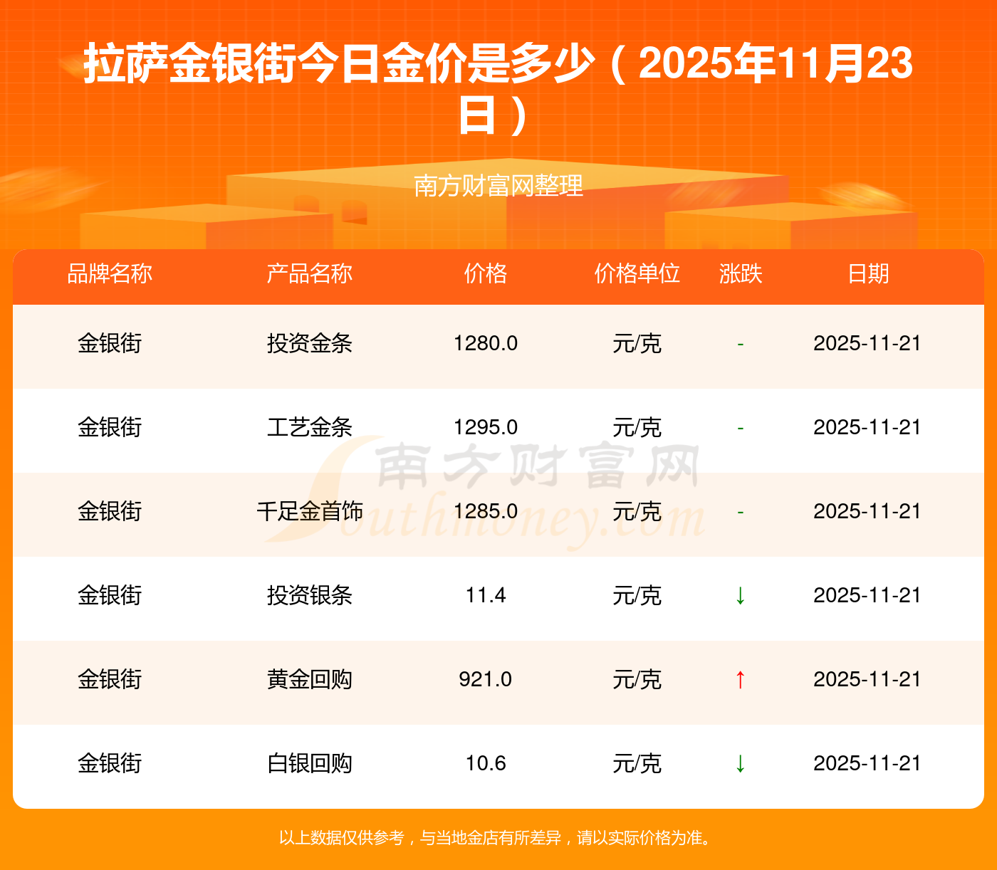 以上数据仅供参考,与当地金店有所差异,请以实际价格为准。