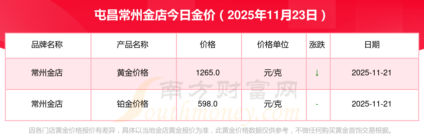 黄金价格1305.0元/克,铂金价格616.0元/克,饰品金价(内地)1305.0元/克,黄金饰品(香港)45110.0,铂金价格(香港)17570.0,金条价格(香港)40690.0,金条金价(内地)1143.0元/克,黄金价格1298.0元/克,铂金价格600.0元/克,足金价格1298.0元/克,黄金价格1266.0元/克。