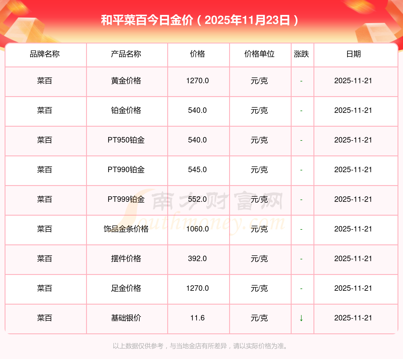 2025年11月23日菜百金条多少钱1克 现在和平菜百黄金价格查询