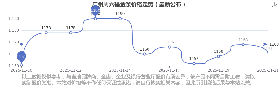 今日广州周六福金条价格最新为:1161.0元/克。