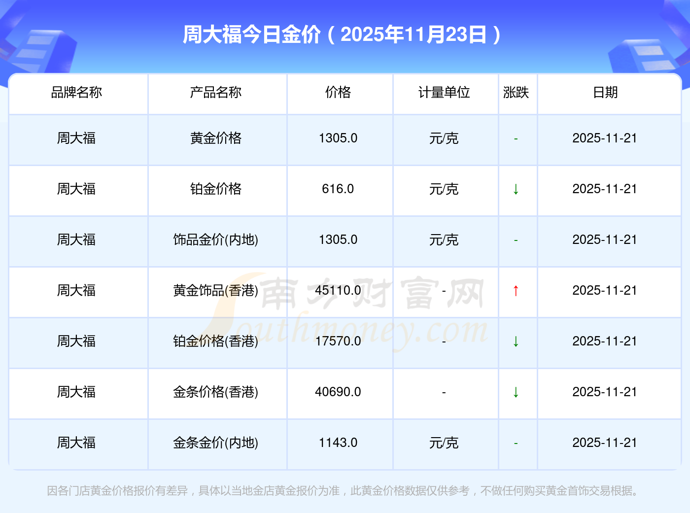 以上数据仅供参考,与当地金店有所差异,请以实际价格为准。