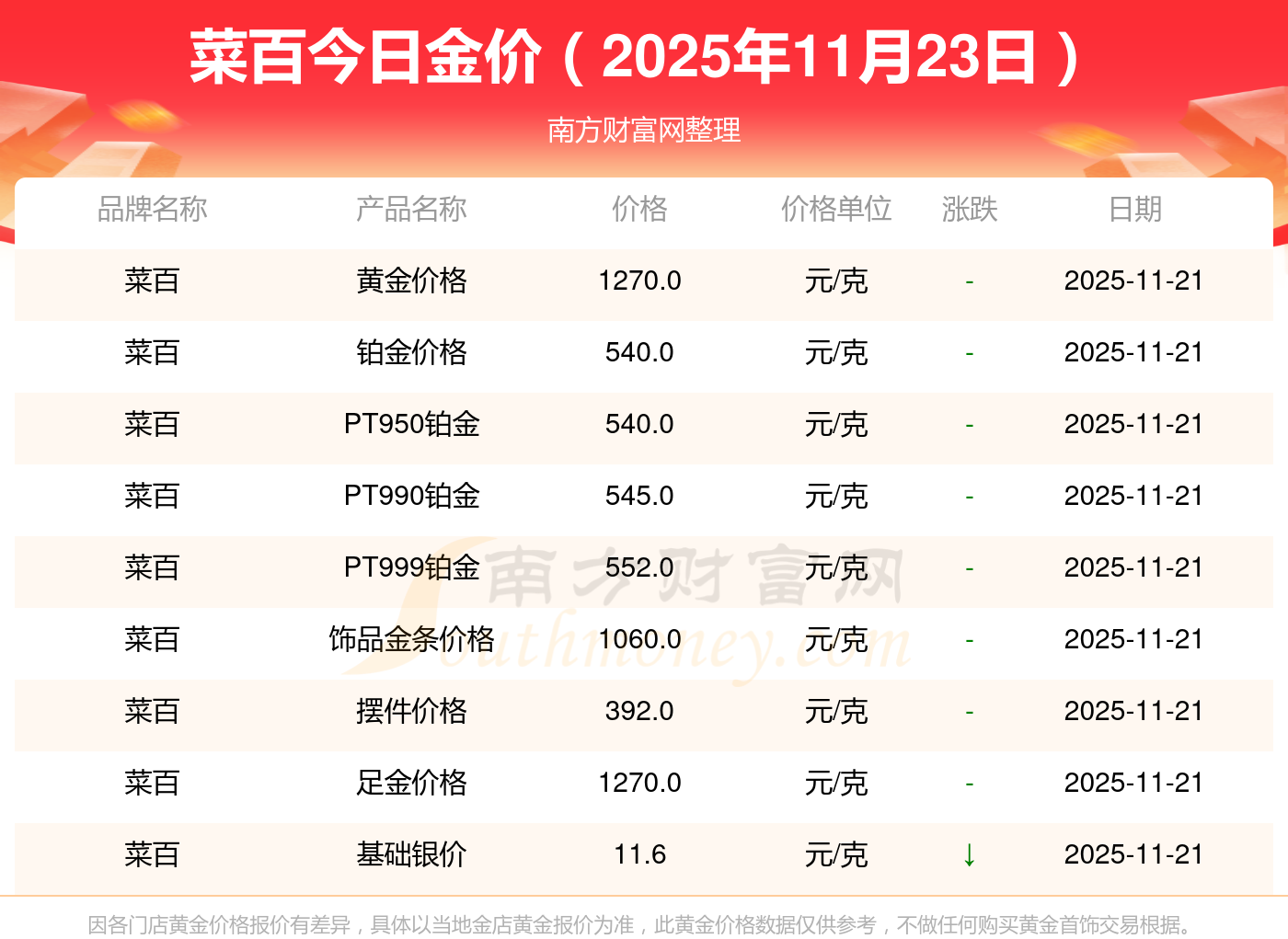 以上数据仅供参考,与当地金店有所差异,请以实际价格为准。
