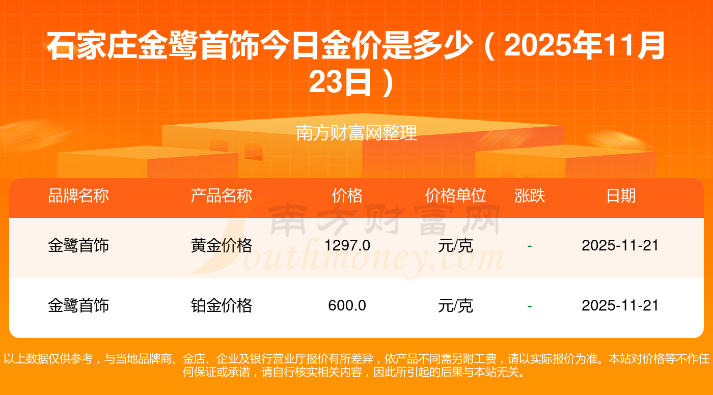 黄金价格1305.0元/克,铂金价格616.0元/克,饰品金价(内地)1305.0元/克,黄金饰品(香港)45110.0,铂金价格(香港)17570.0,金条价格(香港)40690.0,金条金价(内地)1143.0元/克,黄金价格1298.0元/克,铂金价格600.0元/克,足金价格1298.0元/克,黄金价格1266.0元/克。
