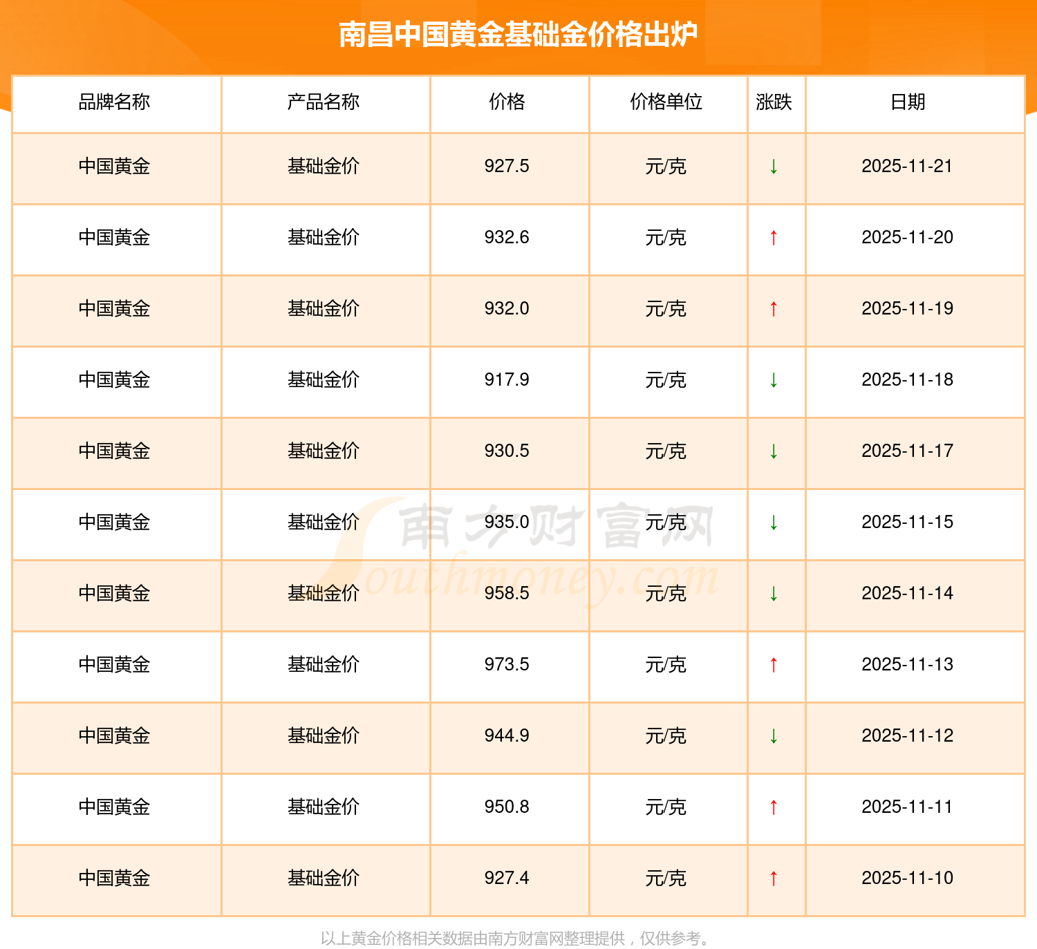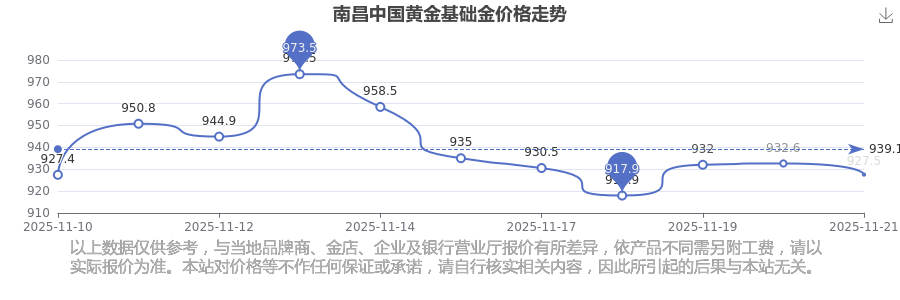 南昌中国黄金在 2025年11月23日,基础金价的售卖价格是 927.5元/克。