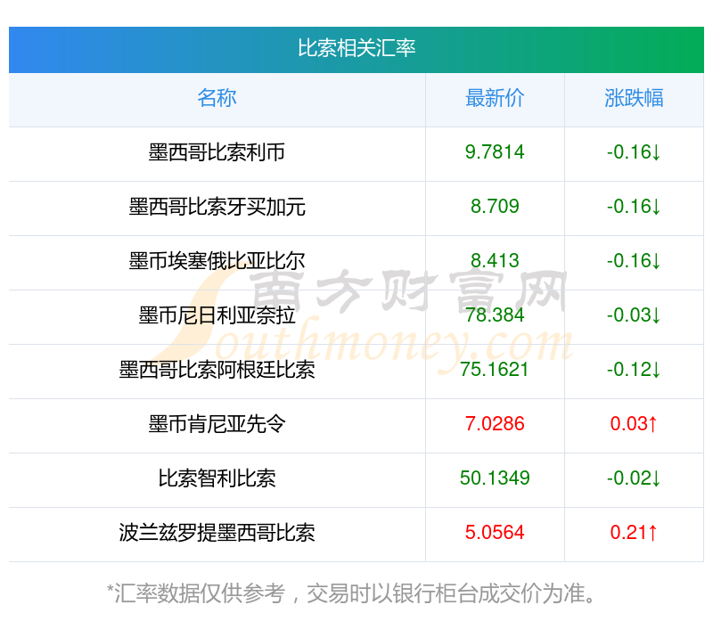 汇率数据仅供参考,交易时以银行柜台成交价为准。