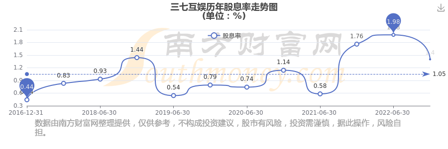 近年三七互娱年度股息率走势如下图: