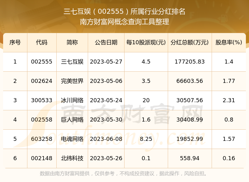 二、三七互娱002555行业分红排名