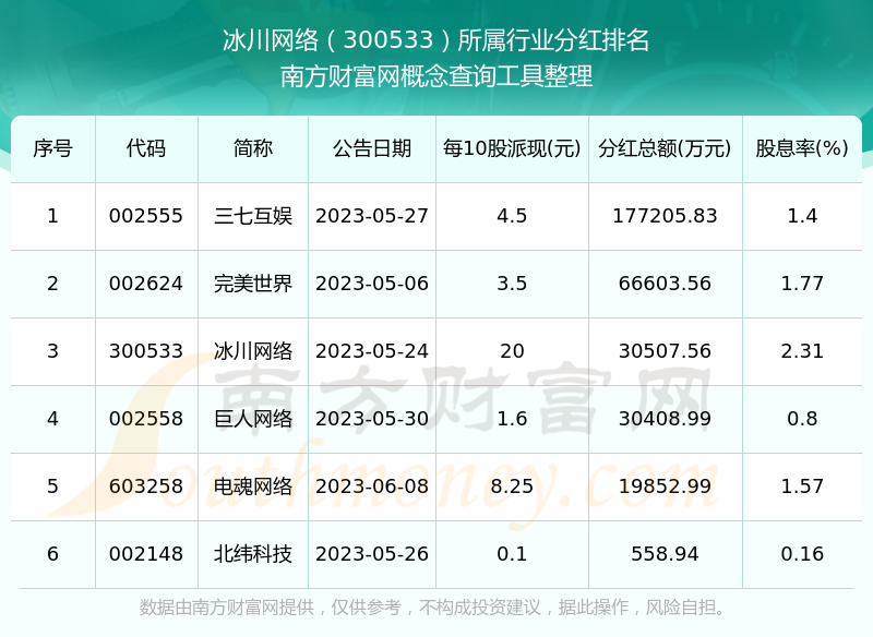 二、冰川网络300533行业分红排名