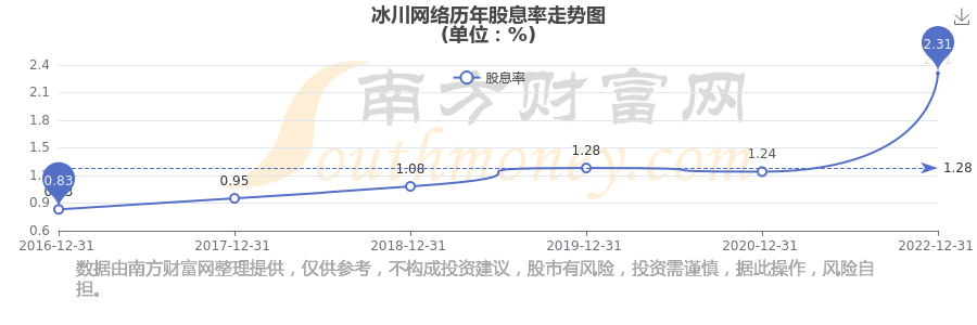 近年冰川网络年度股息率走势如下图: