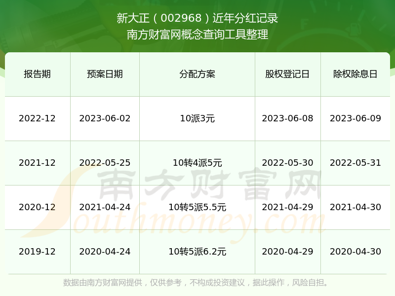 近年新大正分红派息情况如下表所示: