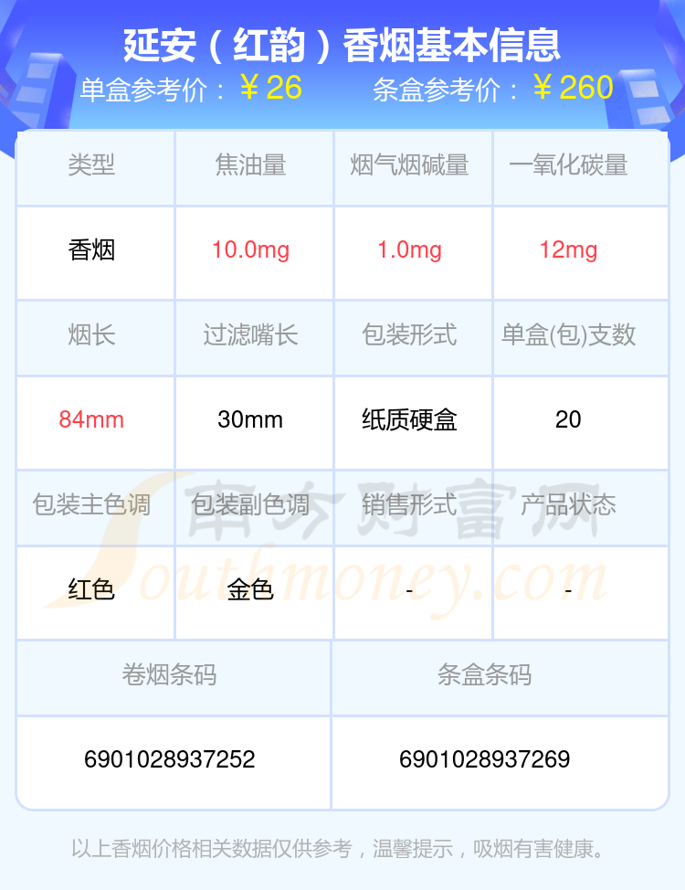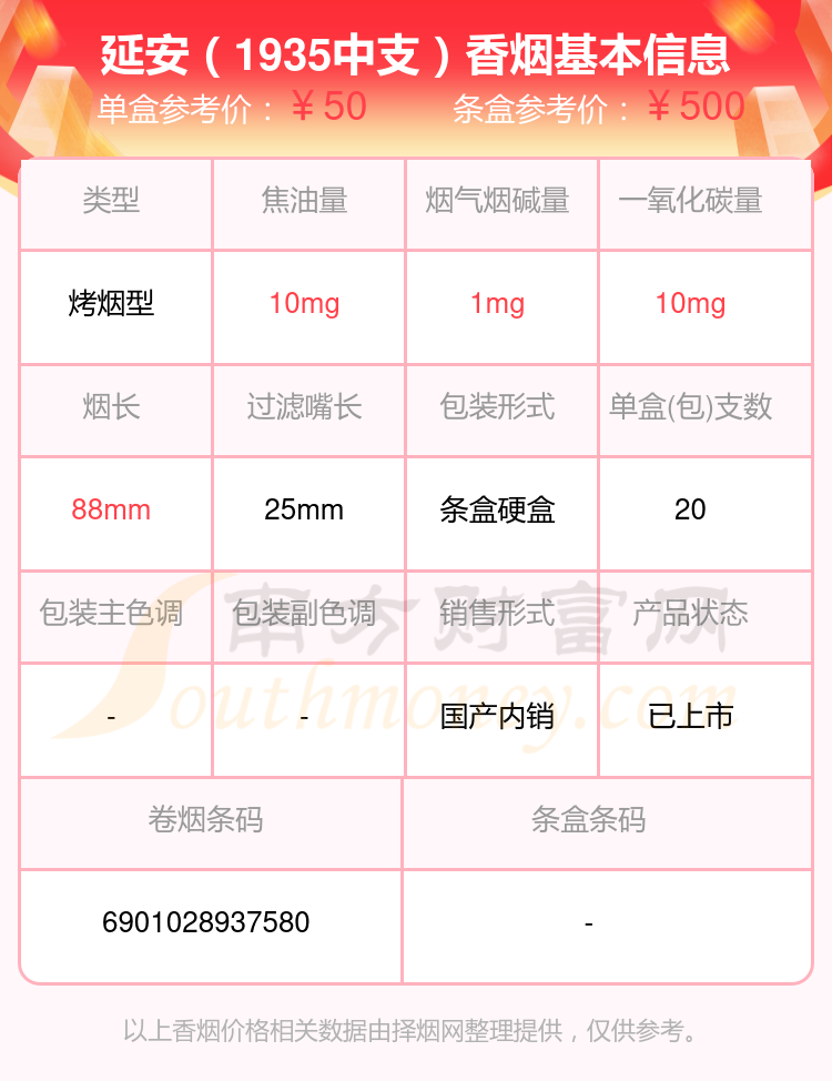 延安(1935)参考价50.0元/包、延安(中支1935)参考价50元/包、延安(1935中支)参考价50元/包、延安(红色记忆)参考价45.0元/包、延安(细支千年帝都)参考价40.0元/包、延安(千年帝都细支)参考价40元/包、延安(圣地河谷)参考价30元/包、延安(红韵)参考价26.0元/包、延安(世纪经典)参考价23.0元/包、延安(硬青春岁月)参考价20元/包等。
