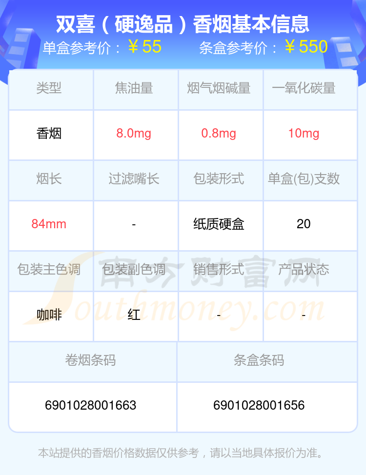 双喜(典藏五叶神)参考价55.0元/包、双喜(硬逸品)参考价55.0元/包、双喜(万象好日子)参考价50.0元/包等。