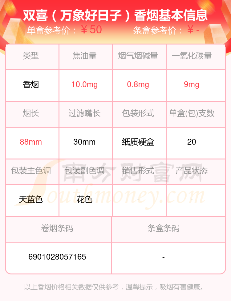 双喜香烟50元到60元的有哪些?择烟网为大家整理提供,分别有: