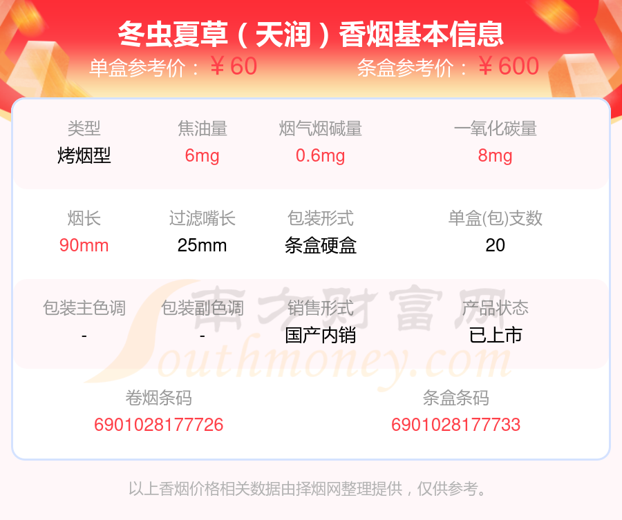 2025冬虫夏草香烟价格表:60-70元的烟有哪些
