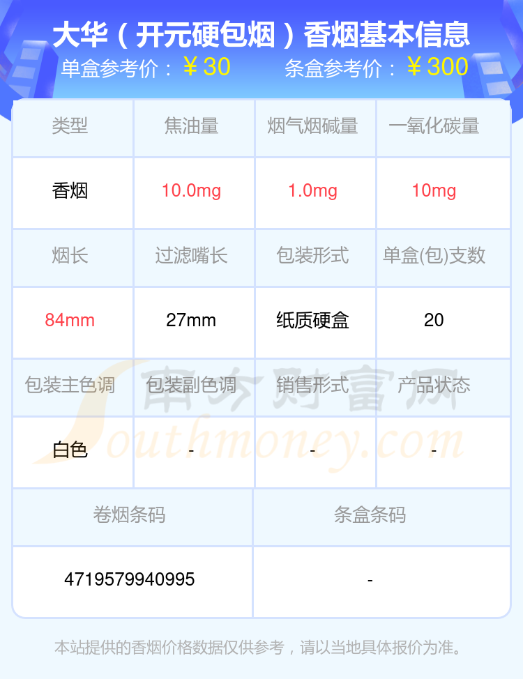 以上香烟价格相关数据仅供参考,温馨提示,吸烟有害健康。