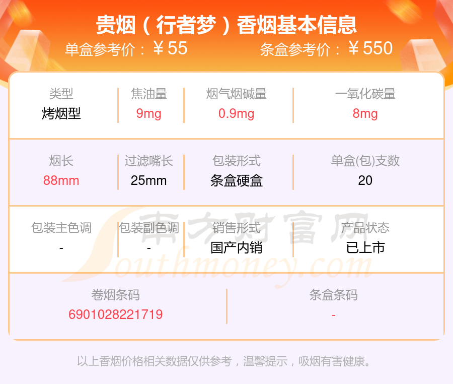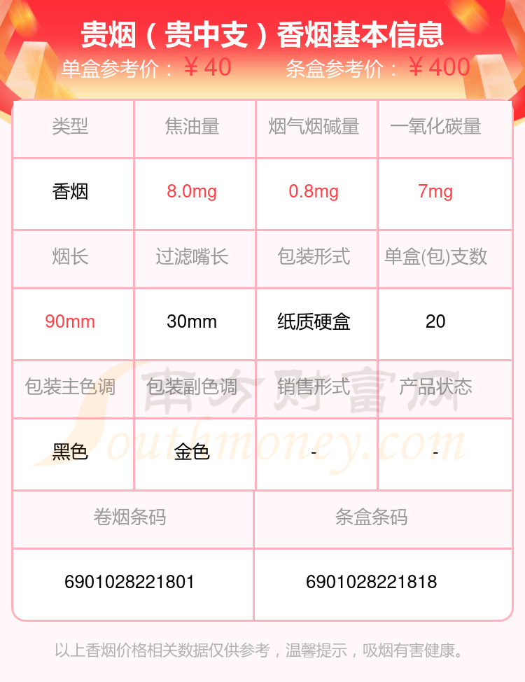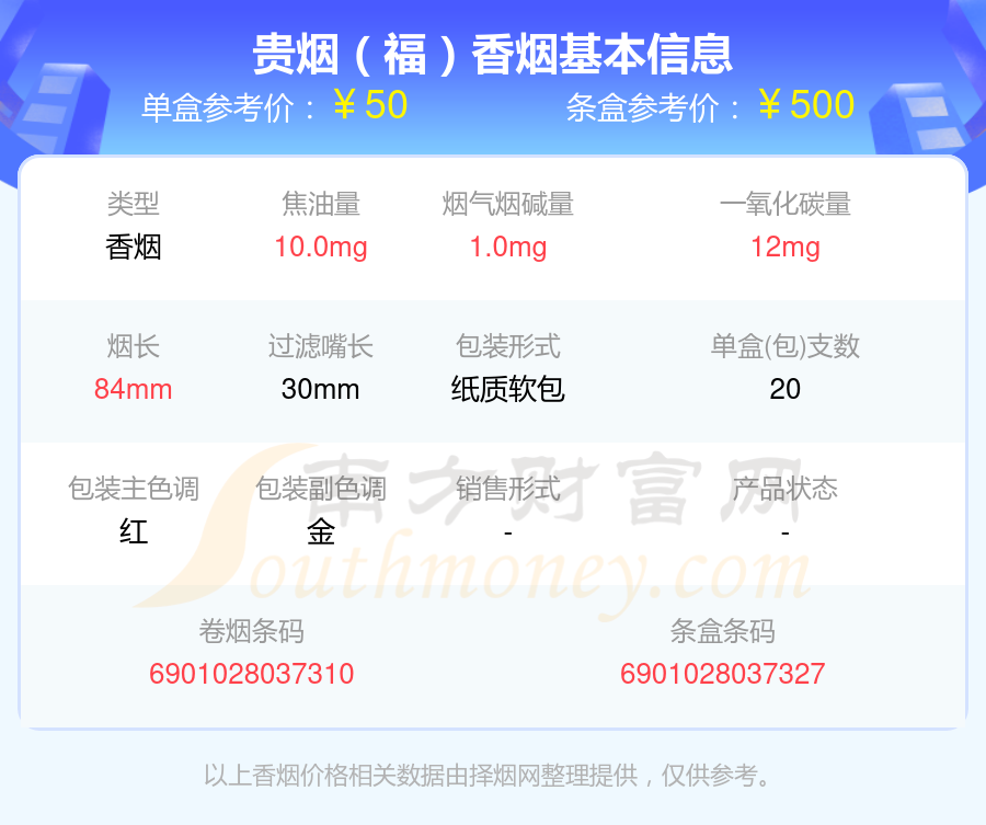 贵烟(福天下)参考价55.0元/包、贵烟(行者梦)参考价55元/包、贵烟(福)参考价50.0元/包、贵烟(福中支)参考价50元/包、贵烟(硬小国酒香)参考价45.0元/包、贵烟(魔力)参考价45.0元/包、贵烟(贵中支)参考价40.0元/包等。