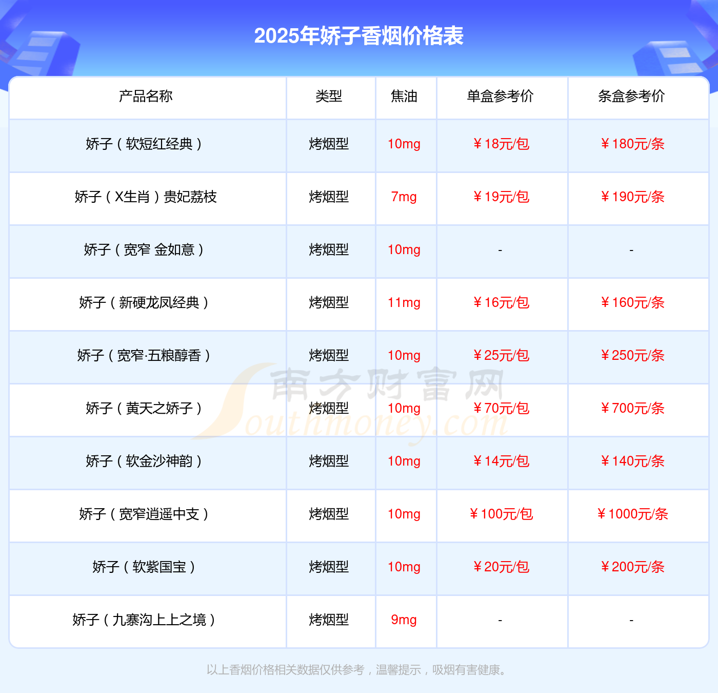 现拥有娇子传奇天子,娇子硬功夫王,娇子硬功夫7mg,功夫娇子10mg等多个系列产品的娇子,创牌于1995年,定位于中高端市场,是中国烟草36个名优品牌之一,其中娇子传奇天子和功夫娇子系列,更是一度成为烟民的关注热点。娇子以四川著名的大熊猫为品牌形象,理念为中国娇子,精英文化,口味以细腻,醇和,舒适为主,产品覆盖面广,增长强劲。