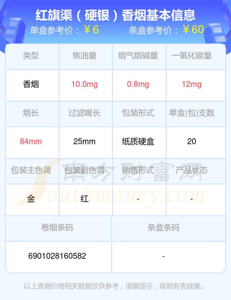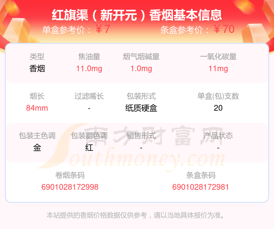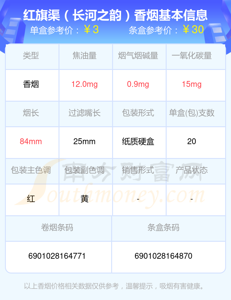 红旗渠(天行健)参考价6.0元/包、红旗渠(新开元)参考价7.0元/包、红旗渠(雪茄型)参考价5.0元/包、红旗渠(长河之韵)参考价3.0元/包、红旗渠(银河)参考价5元/包、红旗渠(银河新版)参考价5元/包、红旗渠(软银河之光)参考价5.5元/包、红旗渠(硬)参考价5.0元/包、红旗渠(芒果)参考价7元/包、红旗渠(硬银)参考价6.0元/包等。