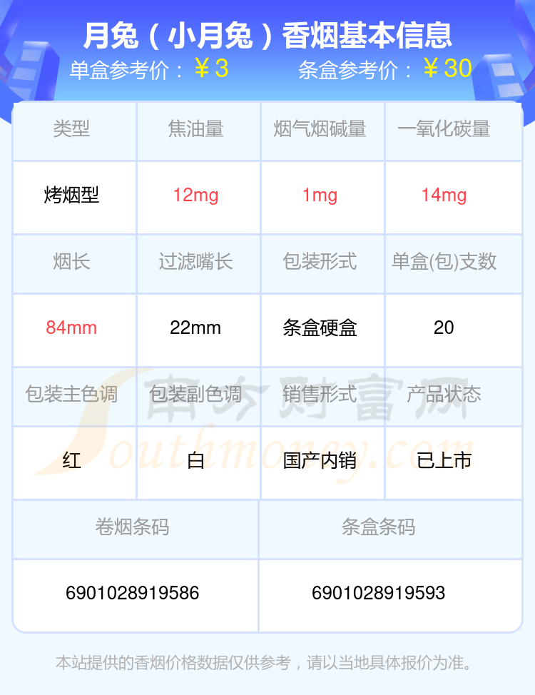 尼古丁低于1.5mg的月兔香烟有哪些?择烟网为大家整理盘点,有月兔(月兔王)、月兔春(2008奥运)、月兔(小月兔)、月兔(特醇)等,详细价格如下: