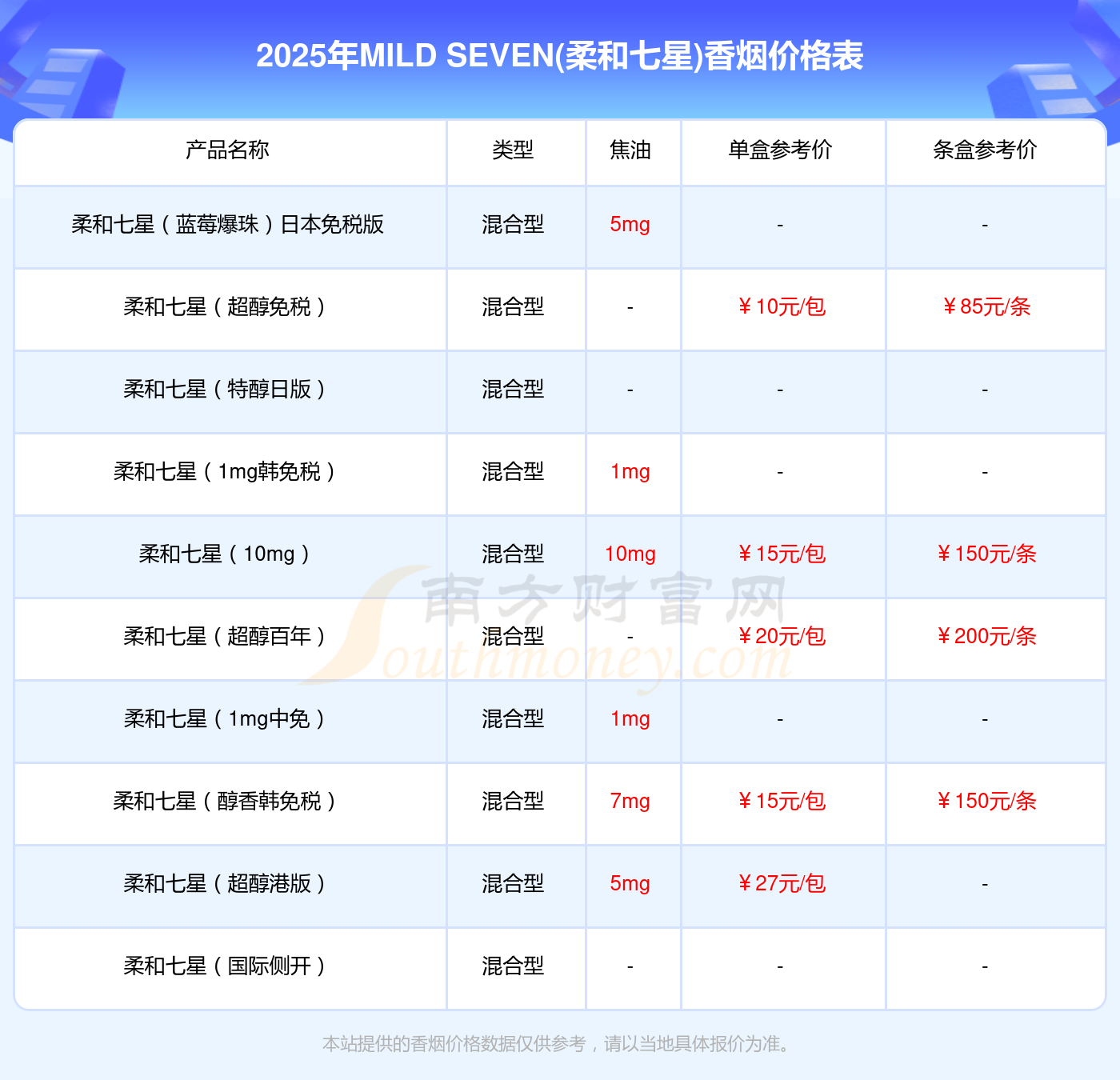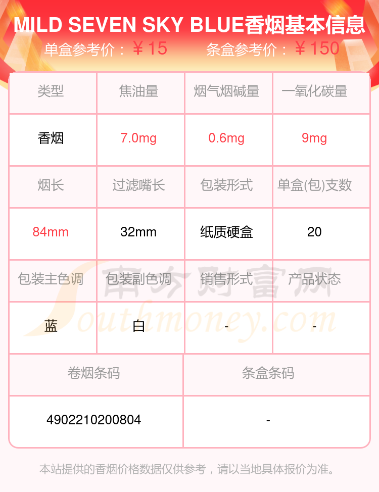 MILD SEVEN SKY BLUE单盒参考价:15元