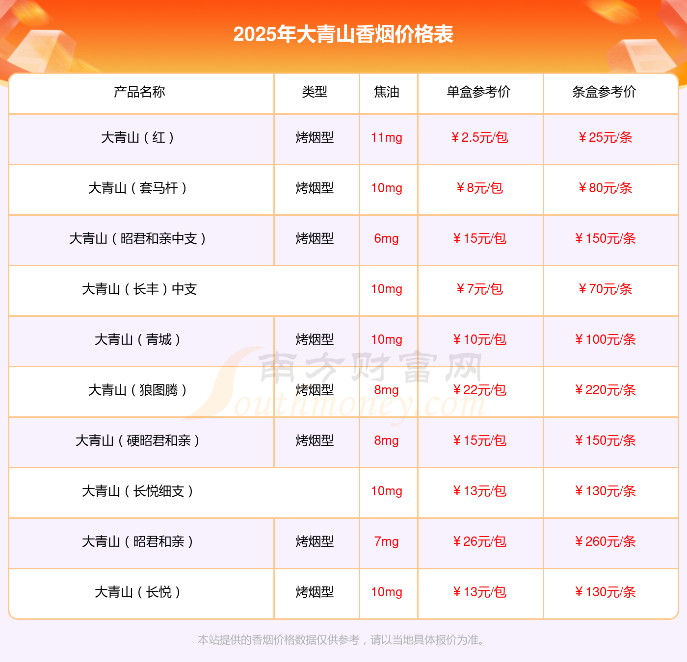 以上香烟价格相关数据由择烟网整理提供,仅供参考。