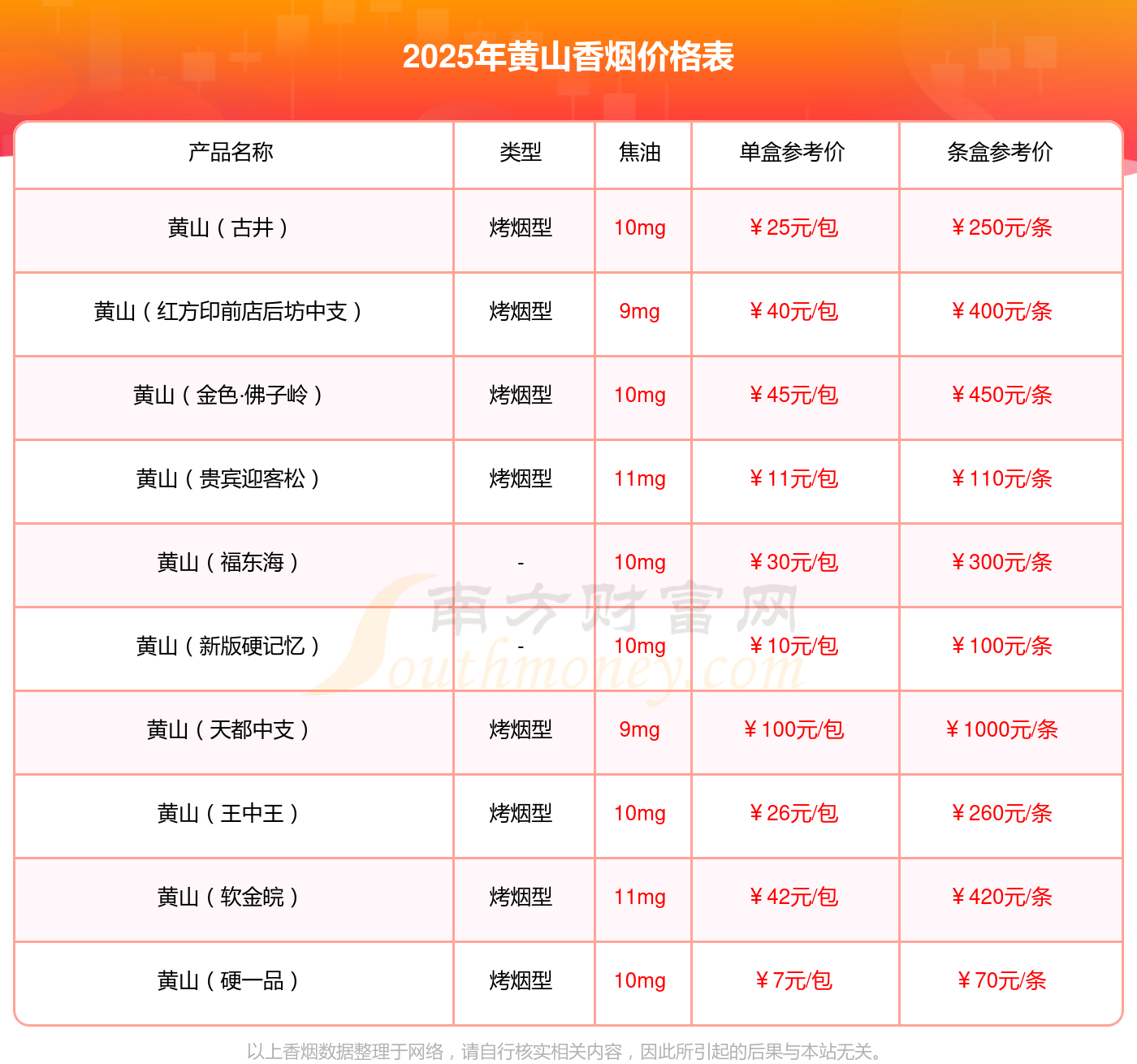 以上香烟数据整理于网络,请自行核实相关内容,因此所引起的后果与本站无关。