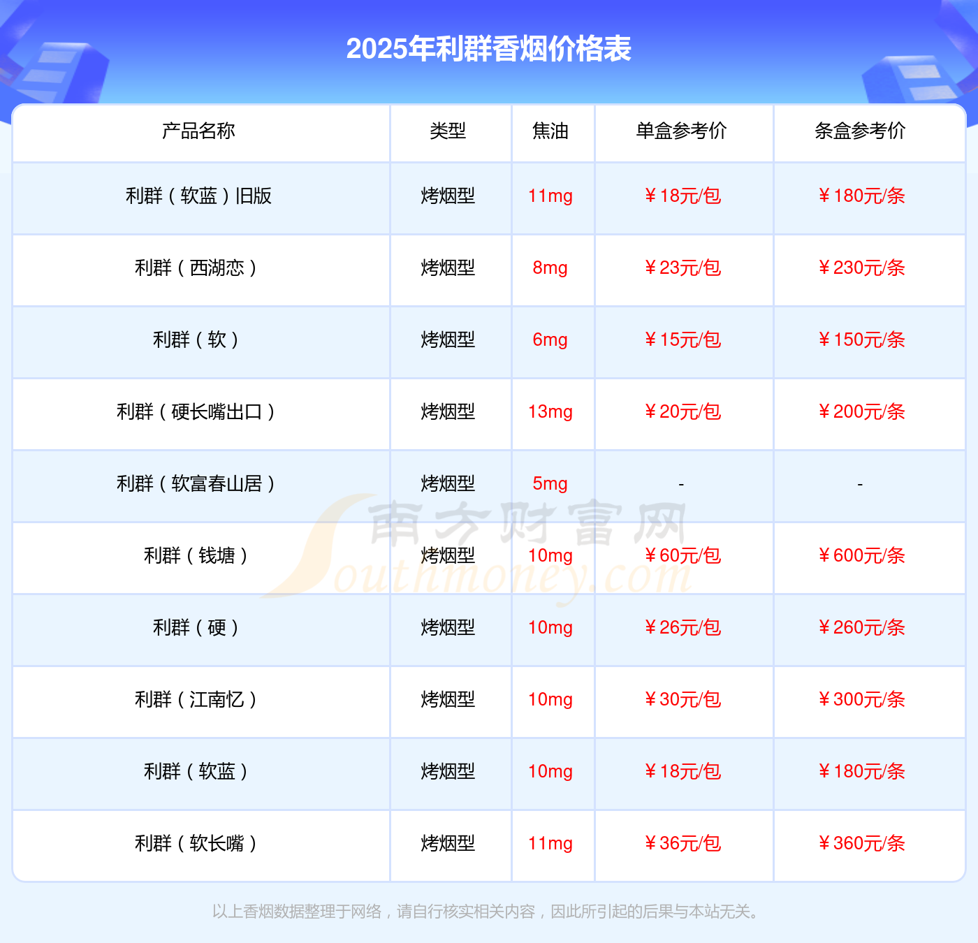 以上香烟价格相关数据仅供参考,温馨提示,吸烟有害健康。