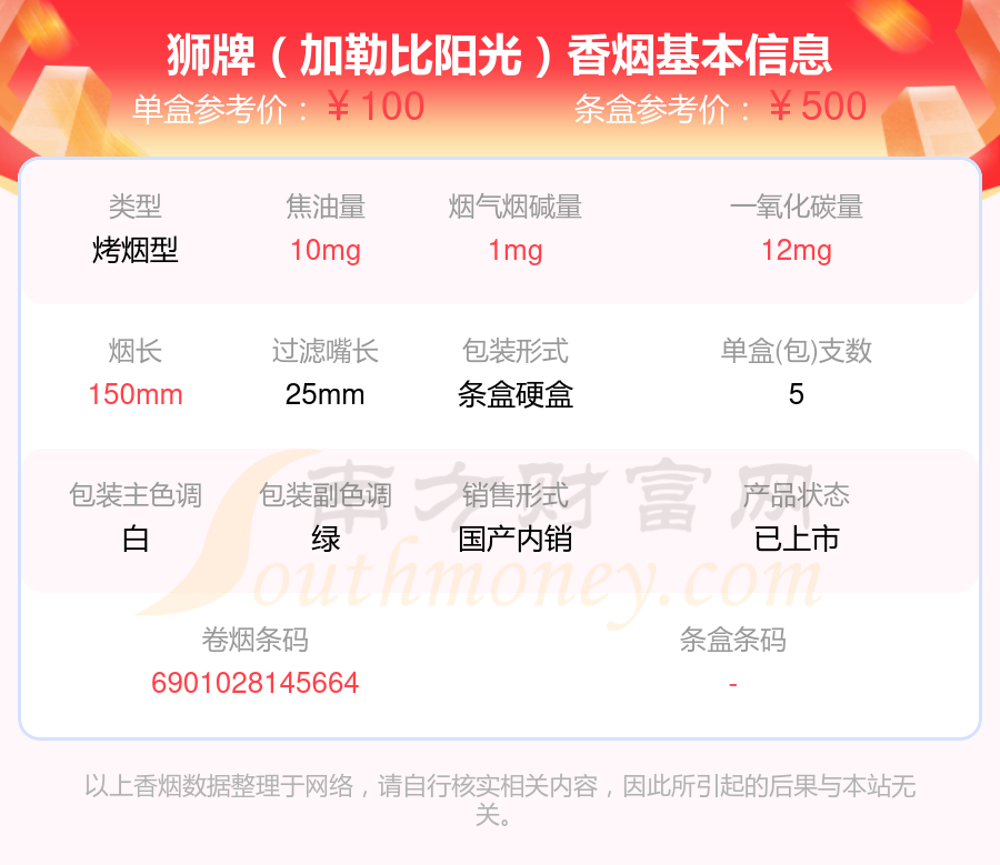 以上香烟数据整理于网络,请自行核实相关内容,因此所引起的后果与本站无关。