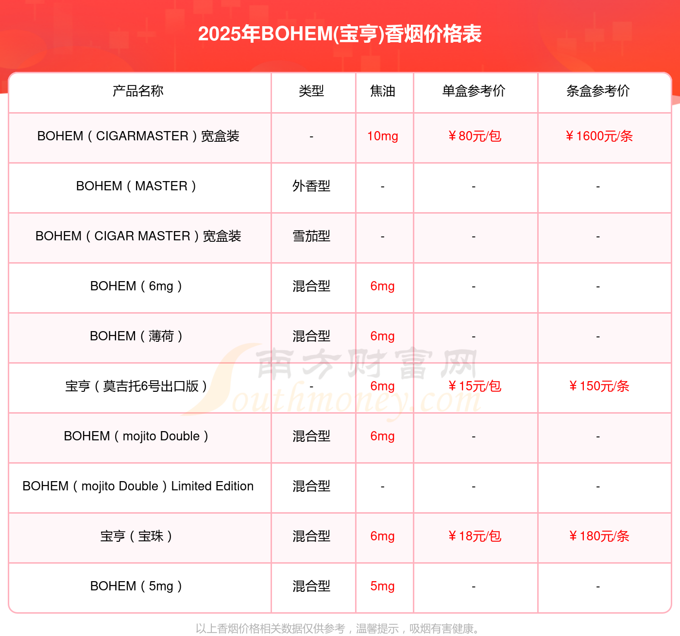 以上香烟价格相关数据由择烟网整理提供,仅供参考。