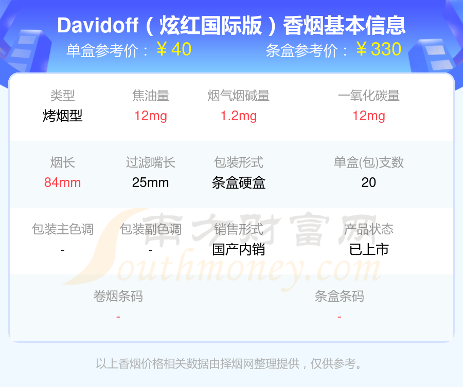 本站提供的香烟价格数据仅供参考,请以当地具体报价为准。