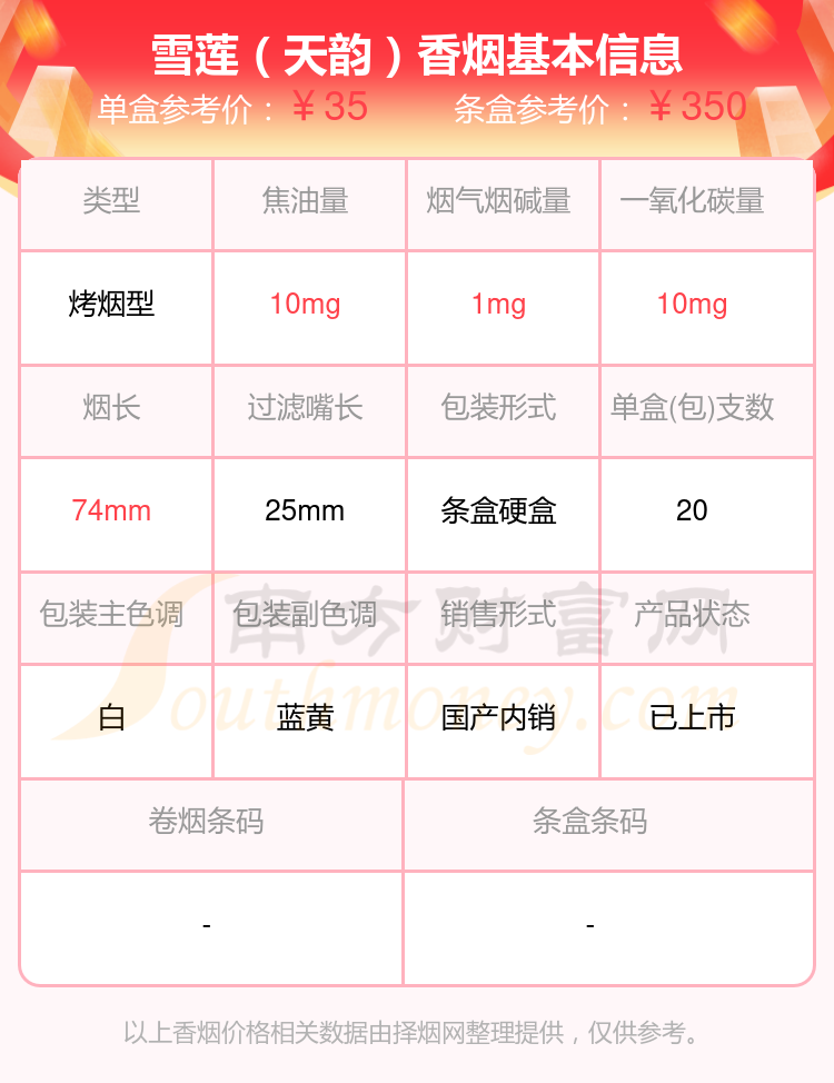 雪莲香烟焦油量10mg以下的烟有雪莲(3000)、雪莲(岁月)、雪莲(细支1960陈皮爆珠)、雪莲(细支1960)、雪莲(尚禧)、雪莲(天韵)、雪莲(软蓝)、雪莲怎么样等,详细价格如下:
