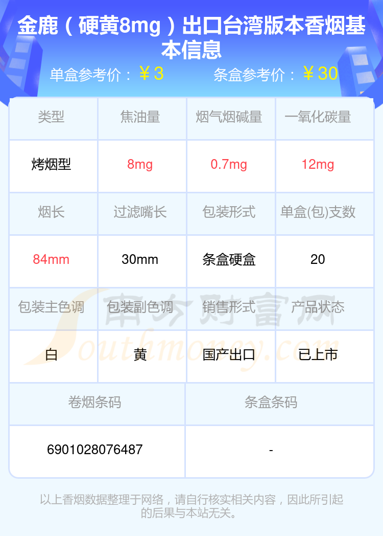 2、金鹿(硬黄8mg)出口台湾版本