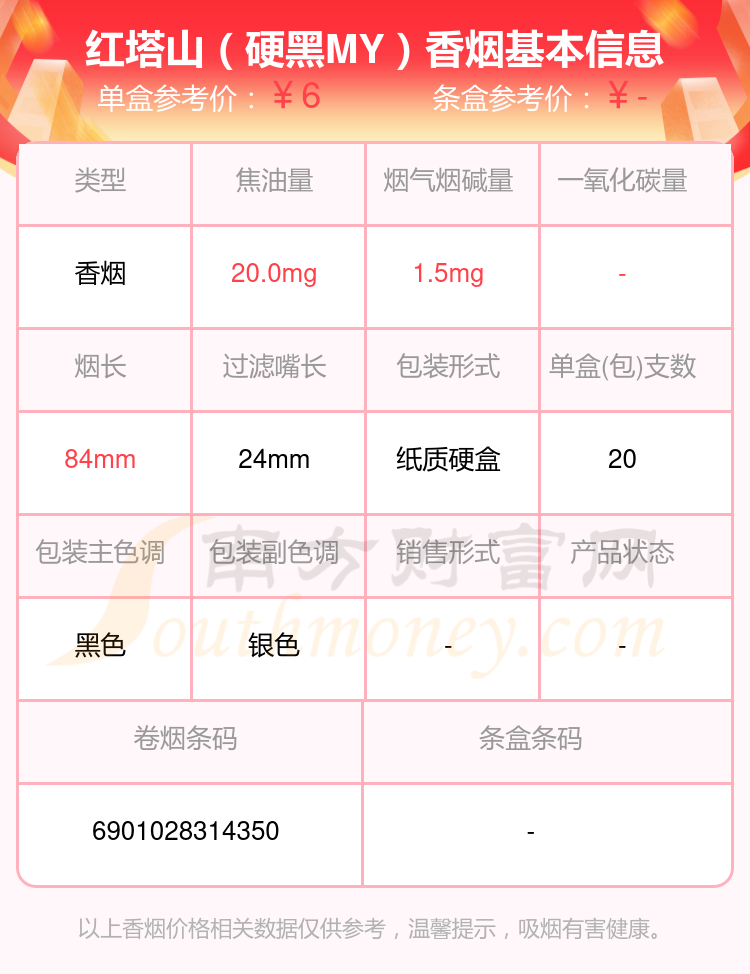 红塔山(硬黑MY)参考价6.0元/包、红塔山(硬新)参考价10.0元/包、红塔山(硬人为峰)参考价20.0元/包、红塔山(硬新境界)参考价15.0元/包、红塔山(硬黑出口12mg)参考价10.0元/包、红塔山(硬出口)参考价6.5元/包、红塔山(专供出口)参考价7.0元/包、红塔山(硬经典)参考价10.0元/包、红塔山(恭贺新禧)参考价14.0元/包、红塔山(硬新势力)参考价11.0元/包等。