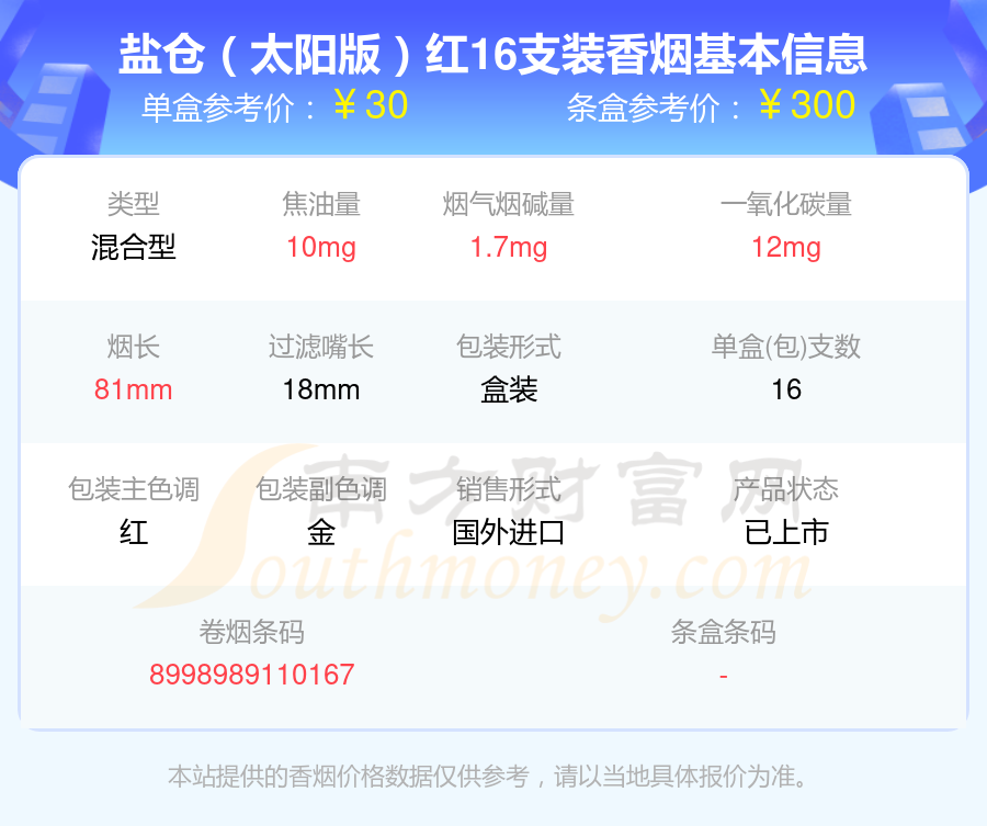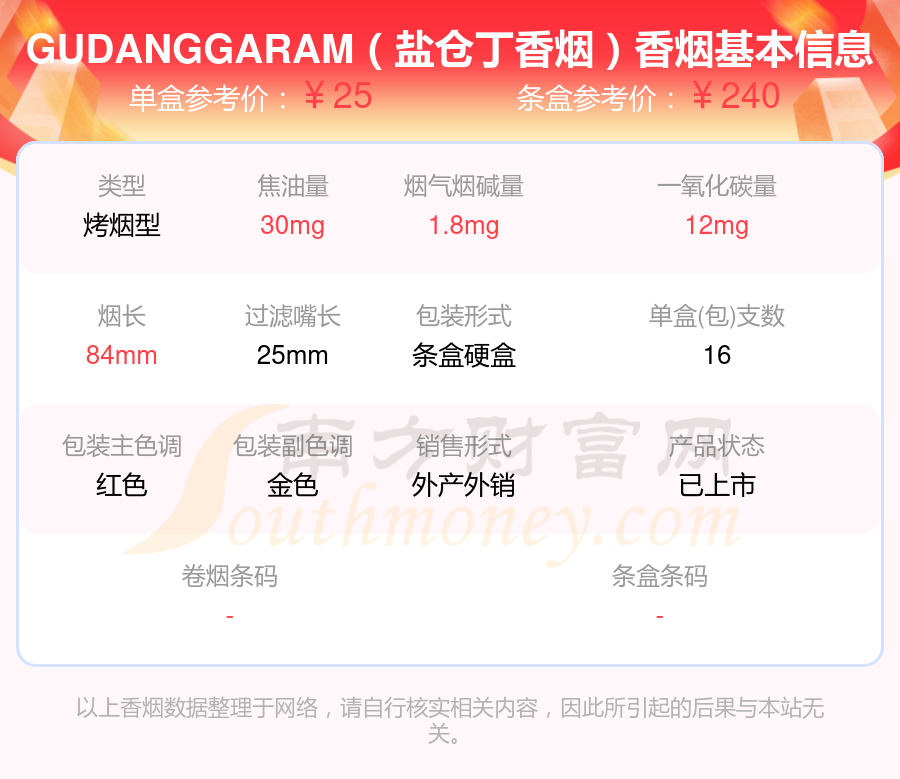 GUDANG GARAM(盐仓)香烟烟碱3mg以下的烟分别有GUDANGGARAM(盐仓丁香烟)参考价25元/包、盐仓(太阳版)红16支装参考价30元/包等。