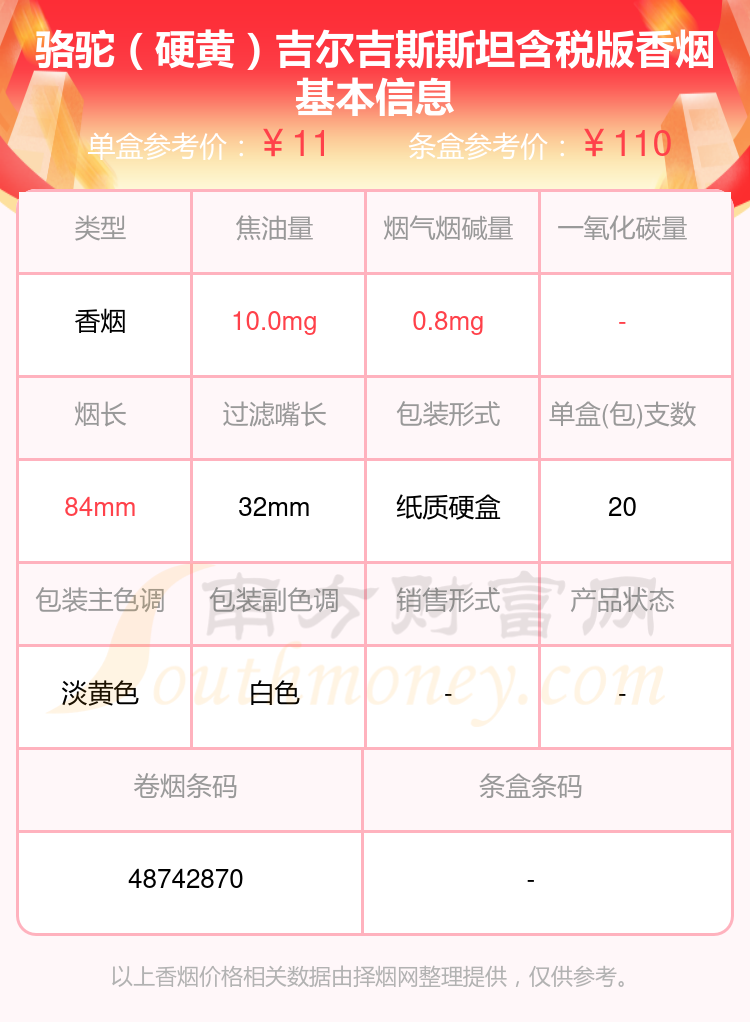 3、骆驼(硬黄)吉尔吉斯斯坦含税版